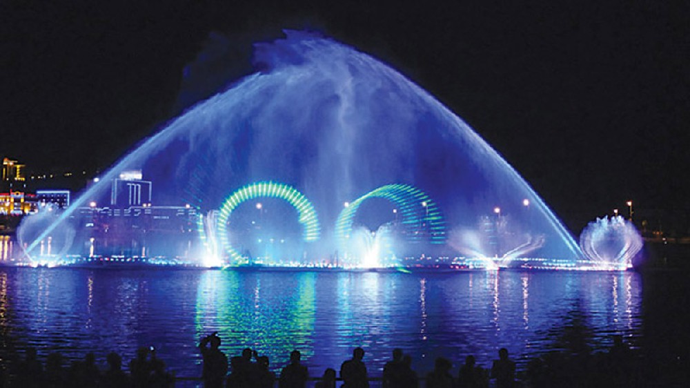西湖音樂噴泉長約126米,弧形部分寬約2米,整個音樂噴泉主要有七···